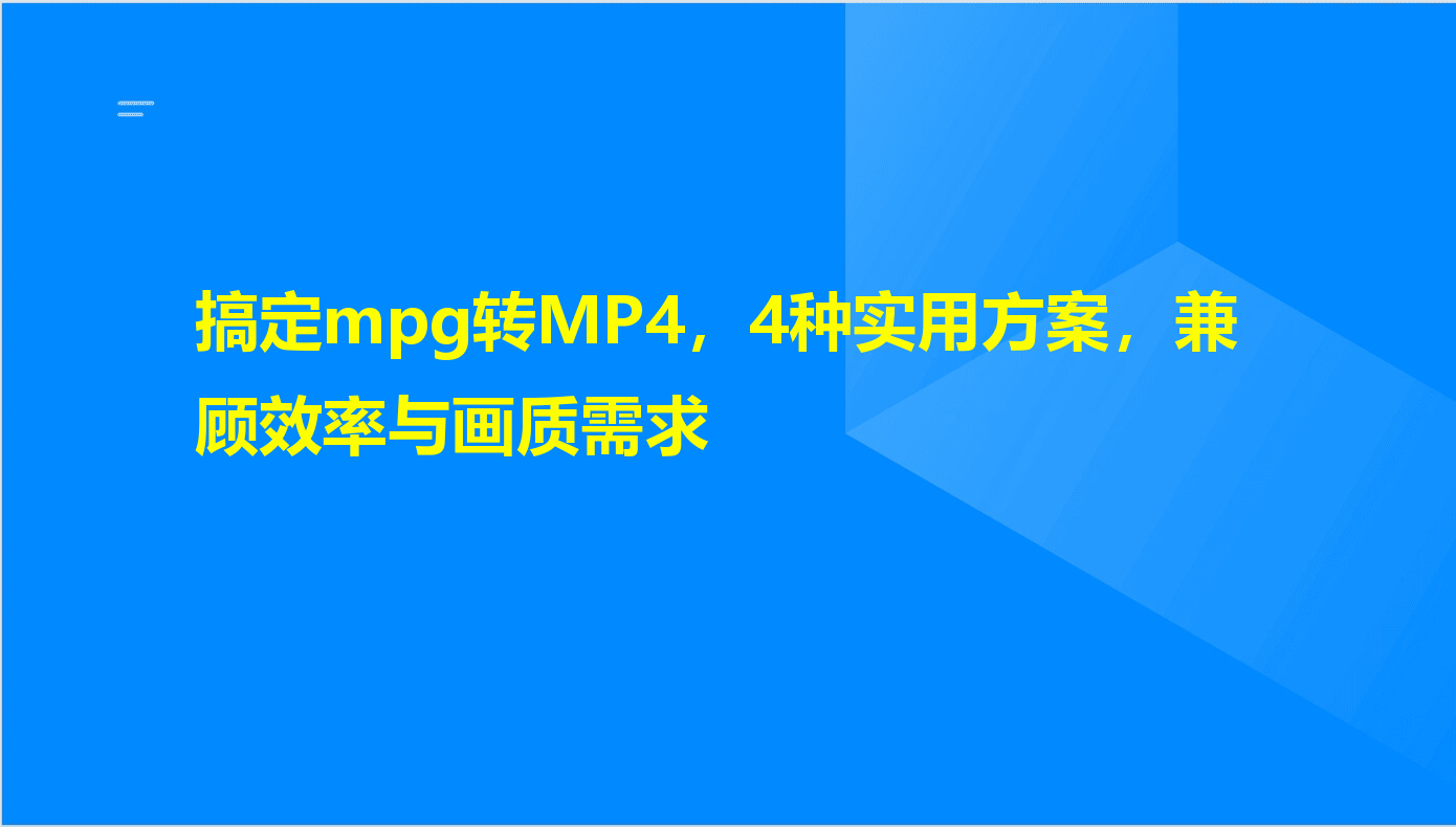在数字时代,视频格式的兼容性问题常常让我们头疼。比如mpg格式,虽然它是MPEG标准的经典视频格式,但在移动设备、主流播放器上经常遇到播放失败的情况。这时把mpg转换成兼容性更强的MP4格式,就能解决大部分播放难题。今天就给大家分享4种不同场景下的转换方案,从简单快速到专业编辑,总有一款适合你。