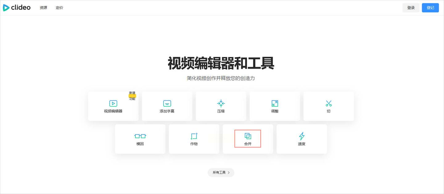 用浏览器访问Clideo官网(注意不要使用广告弹窗链接,避免安全问题),在首页找到【视频合并】功能,点击进入专门的合并页面。这里不需要注册登录,直接在线操作,保护你的隐私安全。