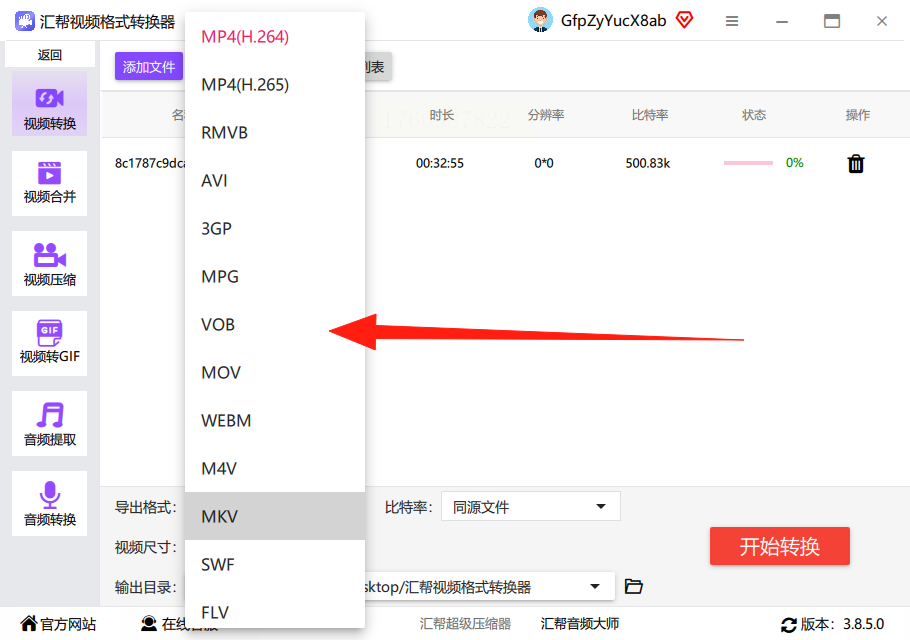 安装好后,打开汇帮视频格式转换器。你会看到清晰的主界面,上面列出了各种功能。我们这次要转换格式,所以直接点击“视频转换”这个选项。