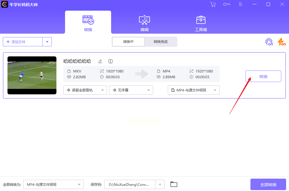 步骤三:确认设置无误后,点击“转换”按钮,稍等片刻即可在完成列表中查看结果。