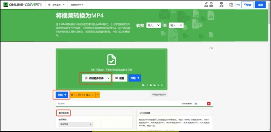 步骤三:文件上传后,下方会出现参数设置区域。在这里,你可以选择输出格式、调整比特率和视频尺寸。