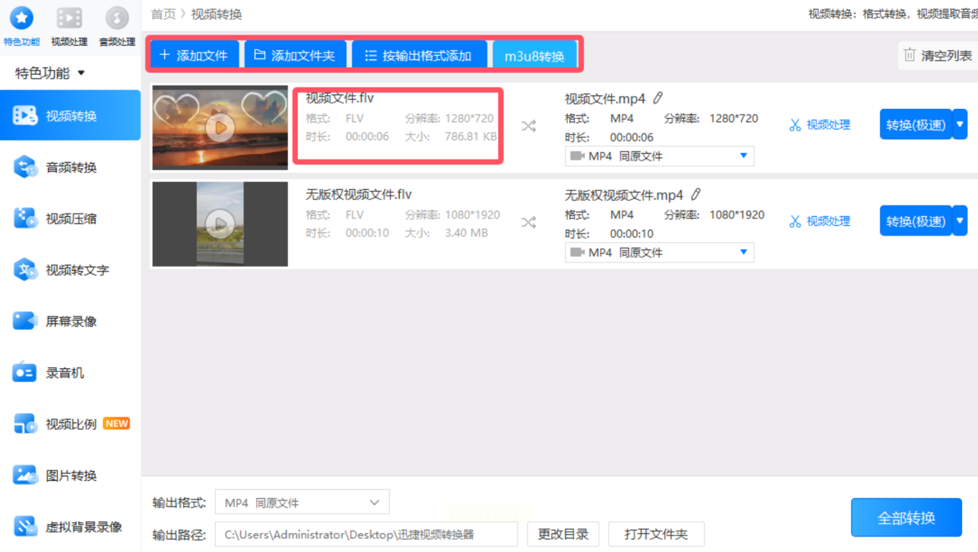 - 方法一:直接拖拽FLV文件至软件主界面的"待转换列表"