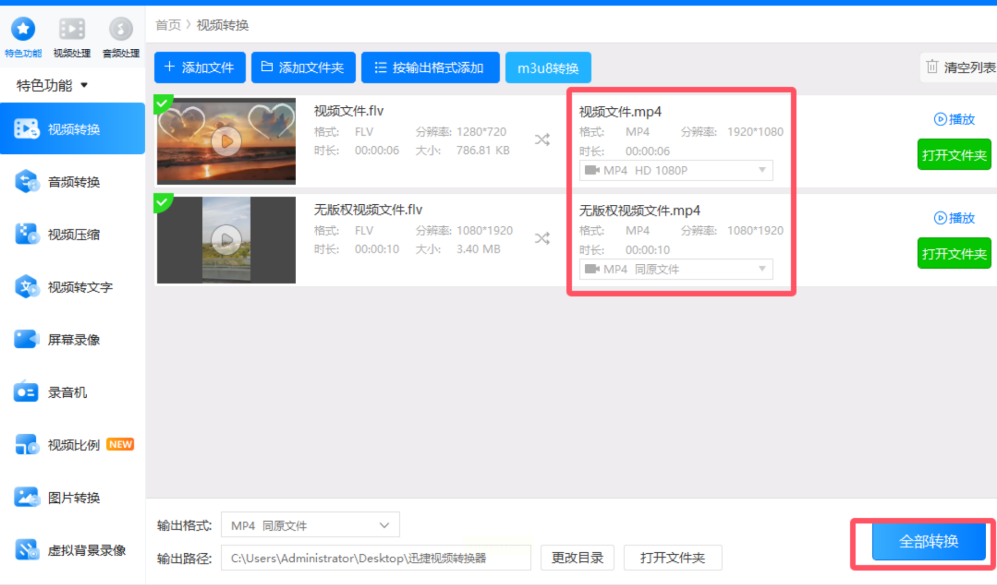 - Windows:双击`flv2mp4.bat`文件(需管理员权限)