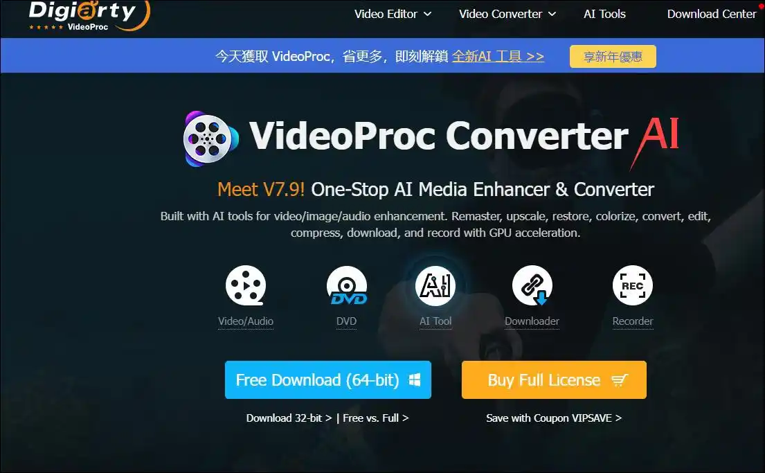 VideoProc适合需要同时处理视频编辑的用户,它不仅能转换格式,还支持裁剪、合并、去水印等功能。操作步骤: