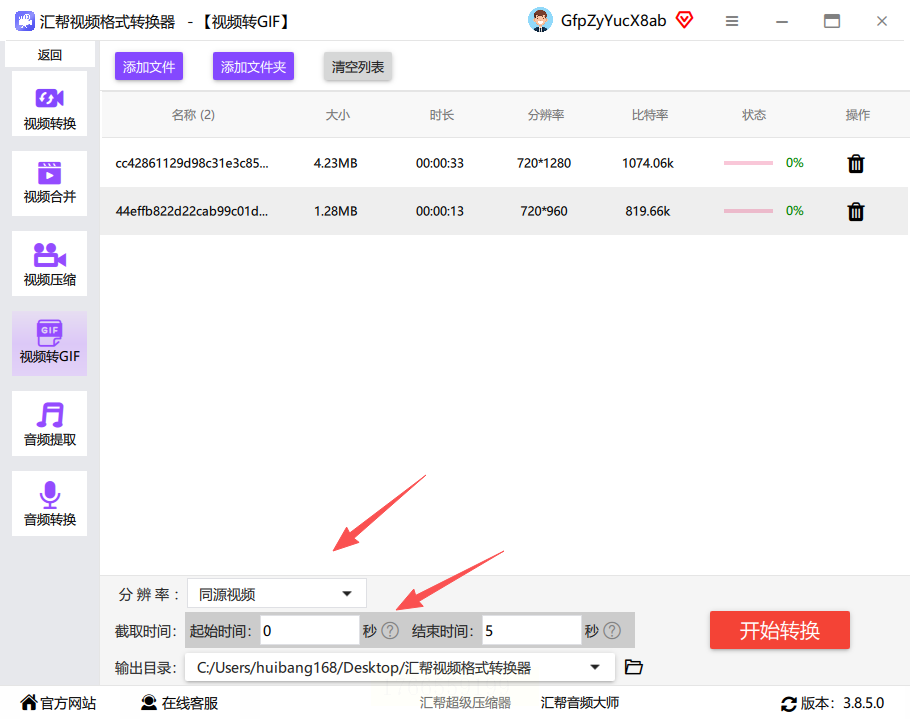 步骤四:最后点击“开始转换”,等一会儿,GIF就生成好了。