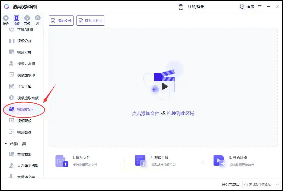 步骤二:点击“添加文件”或者“添加文件夹”,把要转换的视频导进来。你也可以直接把视频文件拖到软件窗口里,支持批量上传。