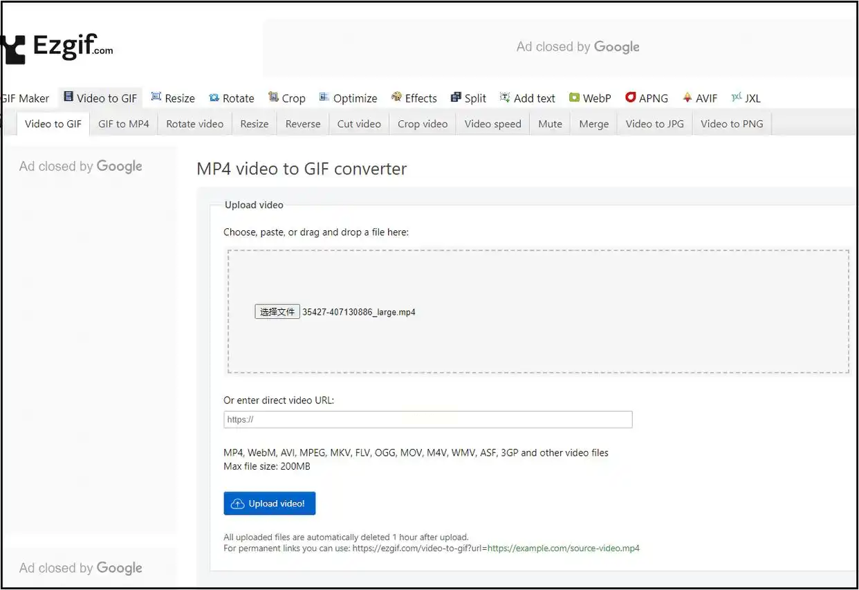 步骤一:用浏览器打开 Ezgif 网站,找到“Video to GIF”工具。
