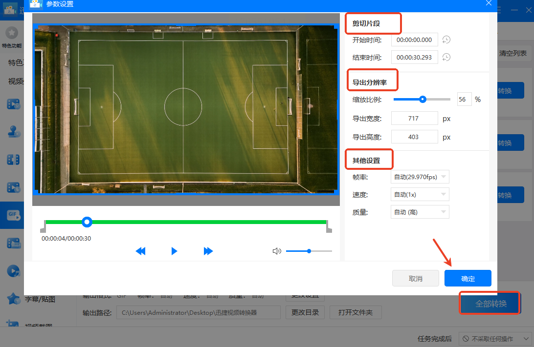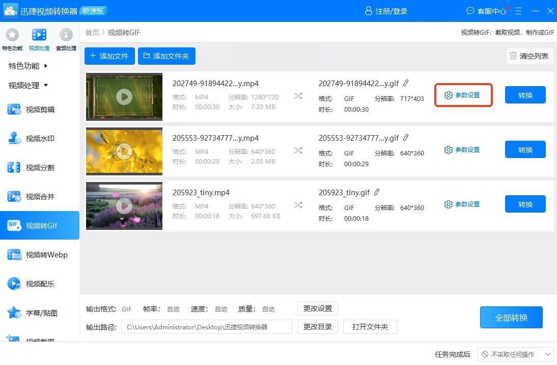完成设置后执行转换,即可获得定制化的GIF成果。