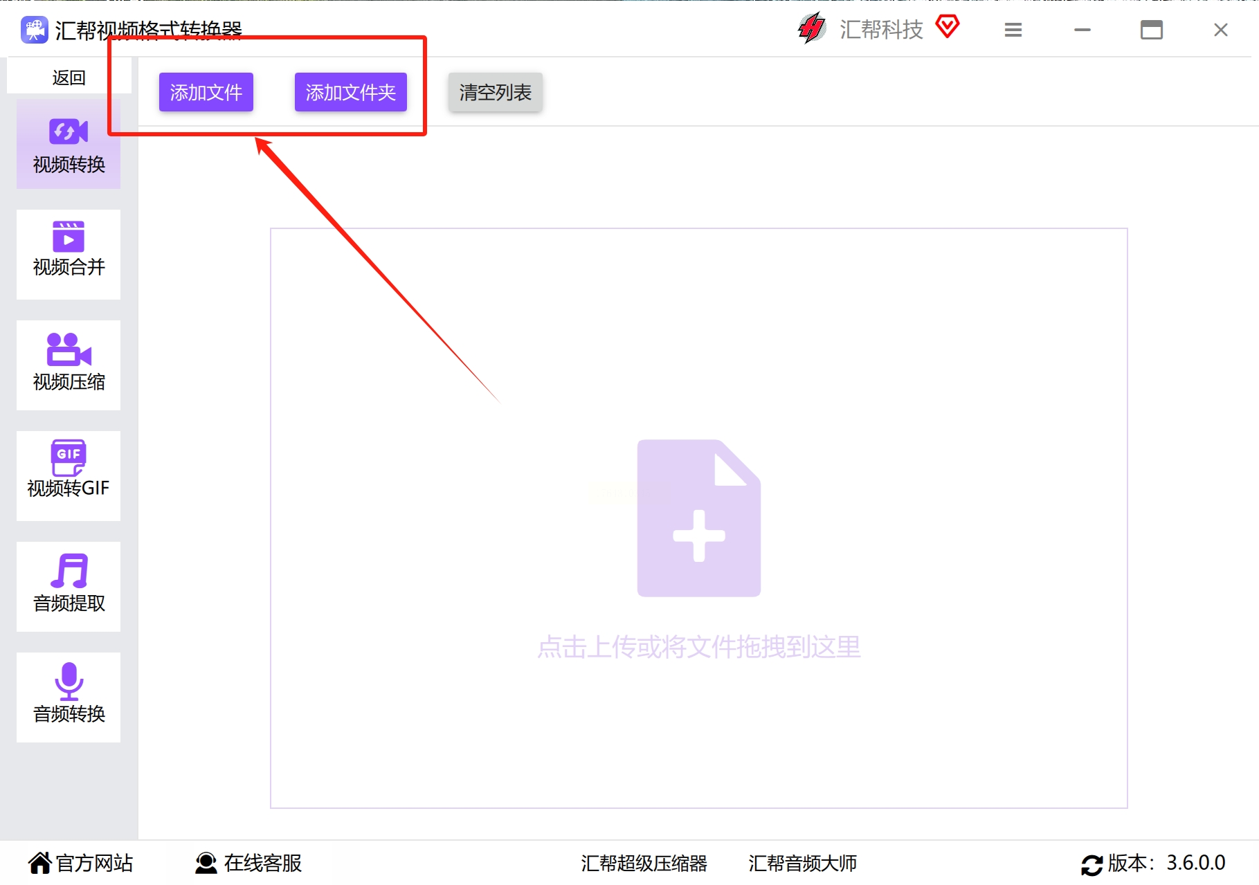 3. 点击左上角【添加文件】,支持批量导入多个MOV文件(没有数量和大小的限制)