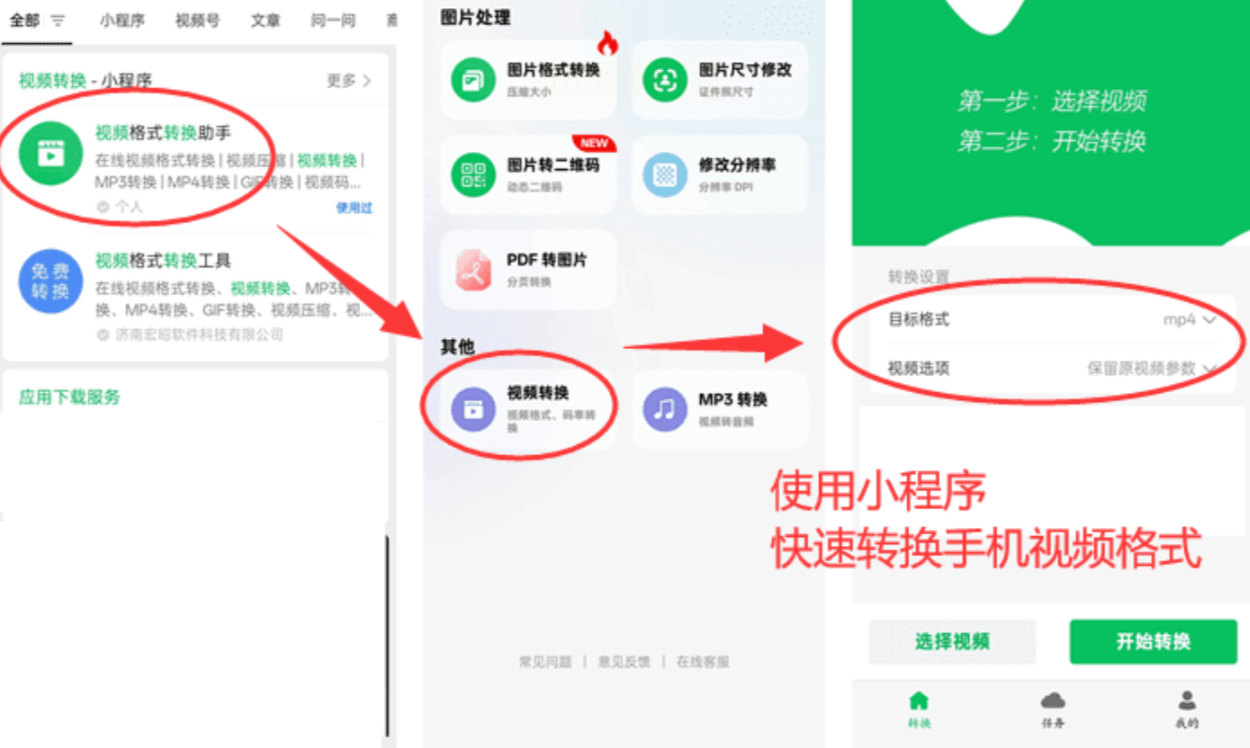 1. 在微信/支付宝小程序搜索"视频格式转换"(推荐"格式转换大师"等正规工具)