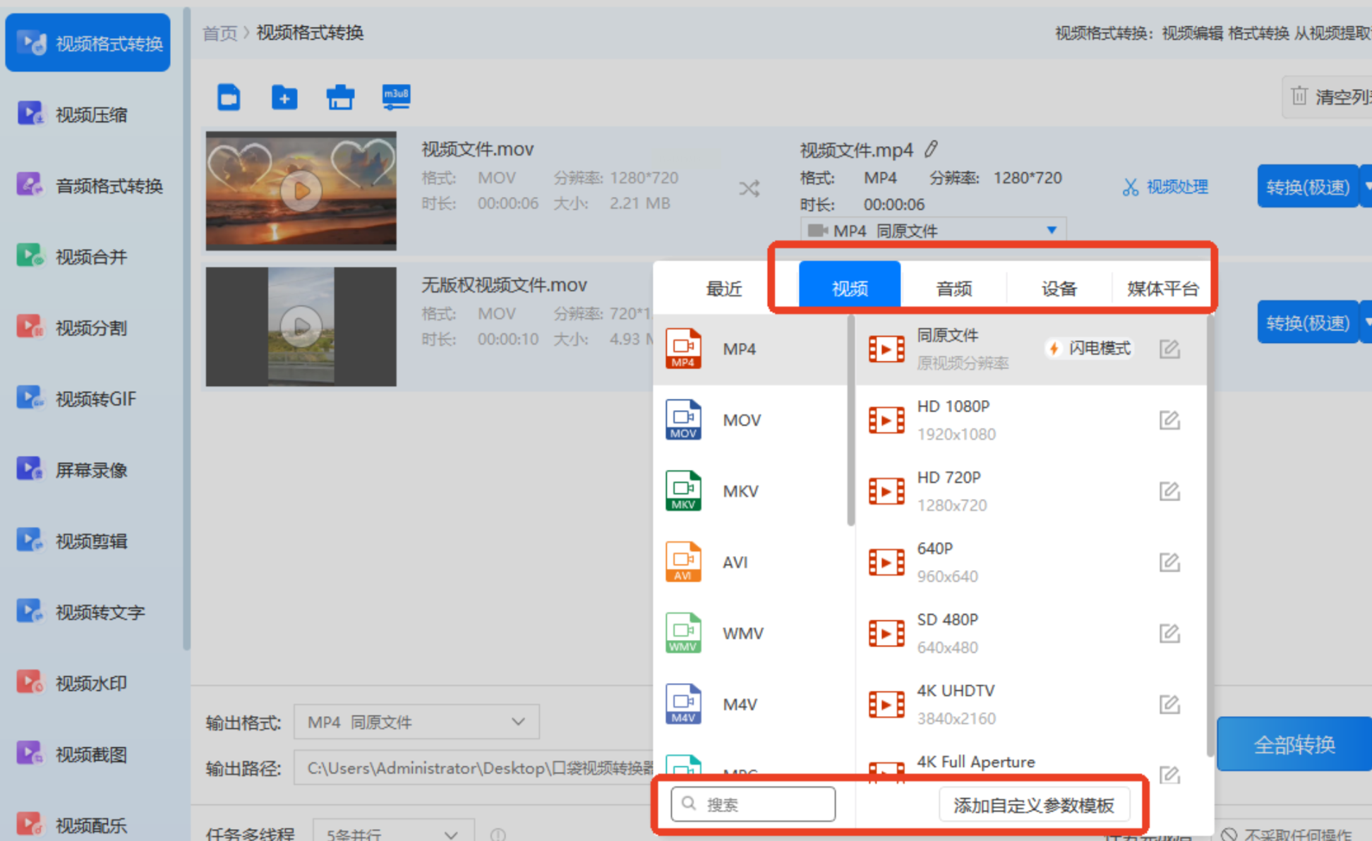 一、使用电脑端的"汇帮视频格式转换器"把mov批量转还能撑mp4