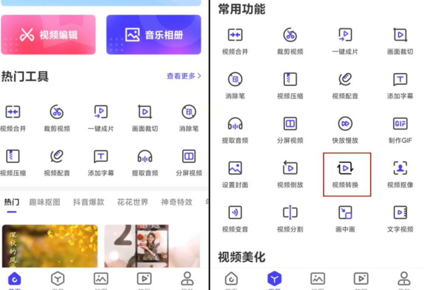 在页面搜索"清爽视频编辑"并安装,打开APP后在功能菜单中选择"视频转换"。首次使用需授予存储权限,确保能读取手机内视频文件。
