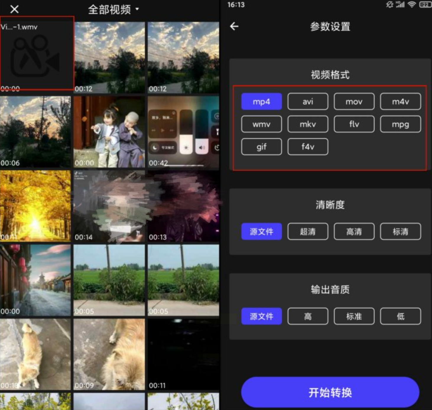 点击"选择视频"按钮,从相册中找到目标WMV文件。支持多选,可同时转换多个视频。在格式设置界面,选择"MP4"格式,可进一步调整分辨率(默认720p)。