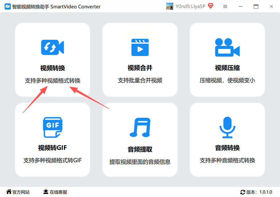 步骤一:打开软件,在主功能菜单中选择“视频转换”模块。