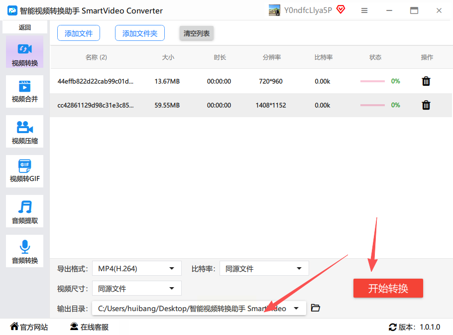 步骤三:所有视频添加成功后,它们会排列在列表里。在列表下方或每个文件旁边,你可以找到输出设置选项。在这里,将“输出格式”设置为“MP4”。你还可以根据需要,微调一下比特率(影响文件大小和清晰度,一般保持默认或适度调整即可)和视频尺寸等参数。
