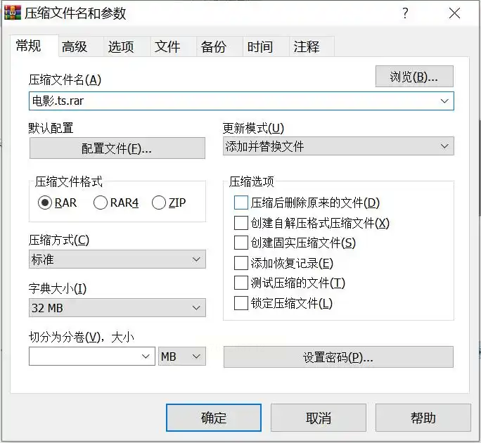 - 分卷压缩:若文件过大,可勾选“分卷压缩”,将大文件拆分为多个小压缩包