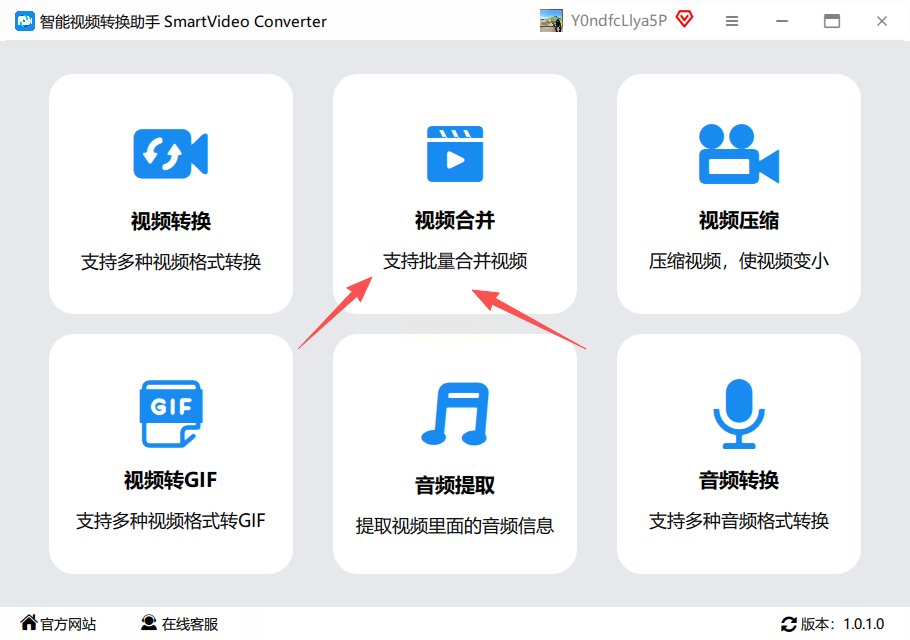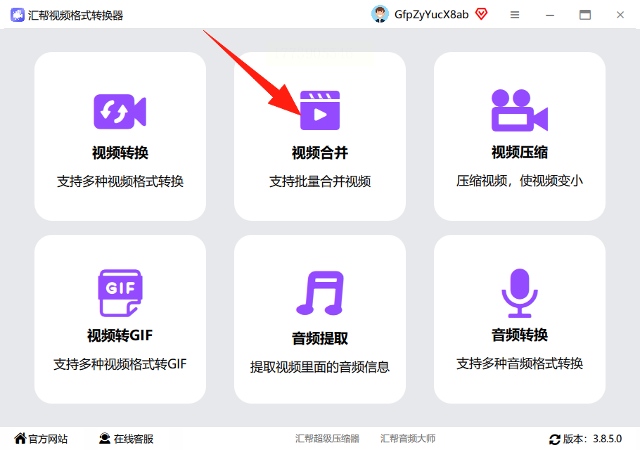 1. 打开工具后,点击界面上的“视频合并”选项