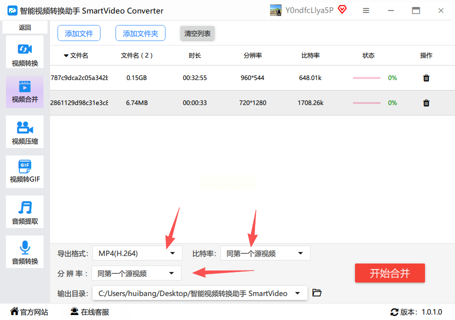 3. 点击“开始合并”,等待系统处理(大文件可能需要几分钟)