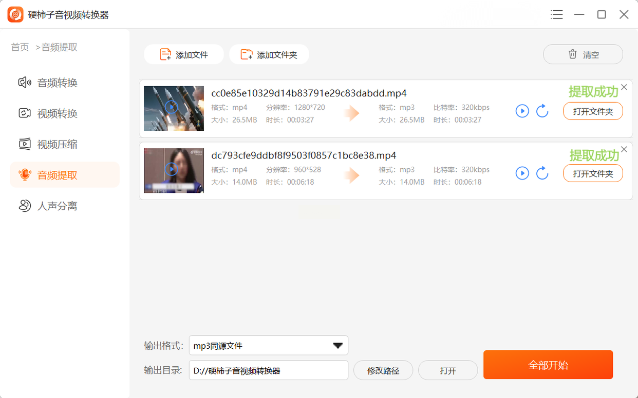 步骤五:设置好格式和输出路径后,点击“开始提取”按钮。软件会显示进度条,提取完成后,MP3文件会自动保存到指定文件夹,而原始视频文件会保留备份。