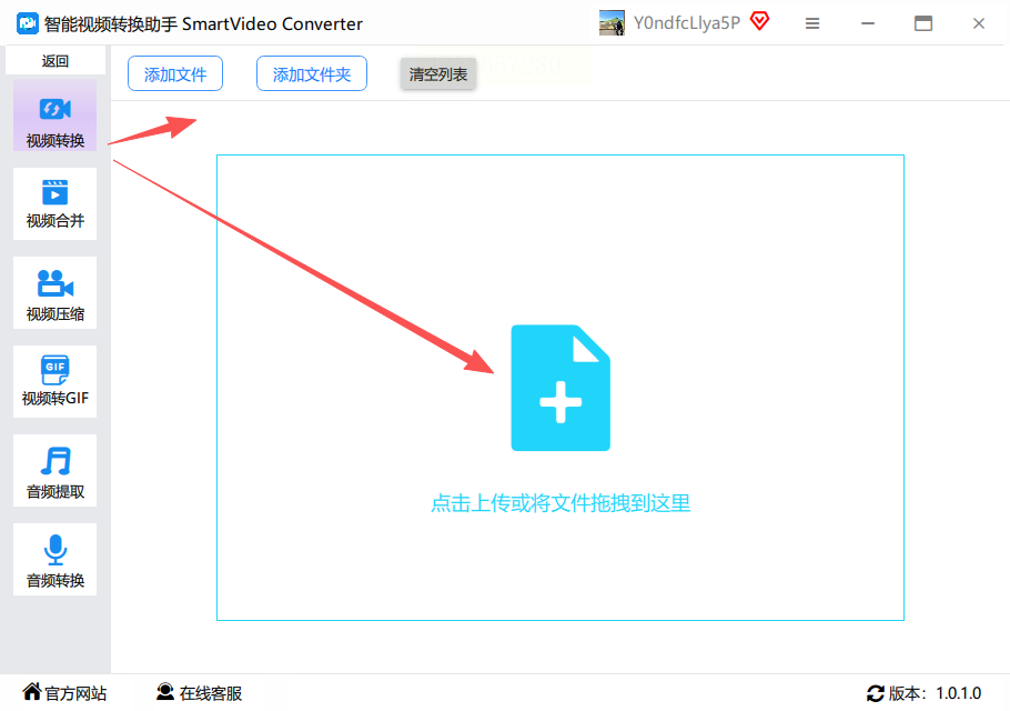 2. 点击"选择文件"按钮,上传RMVB文件(支持拖放操作)