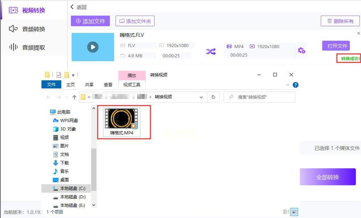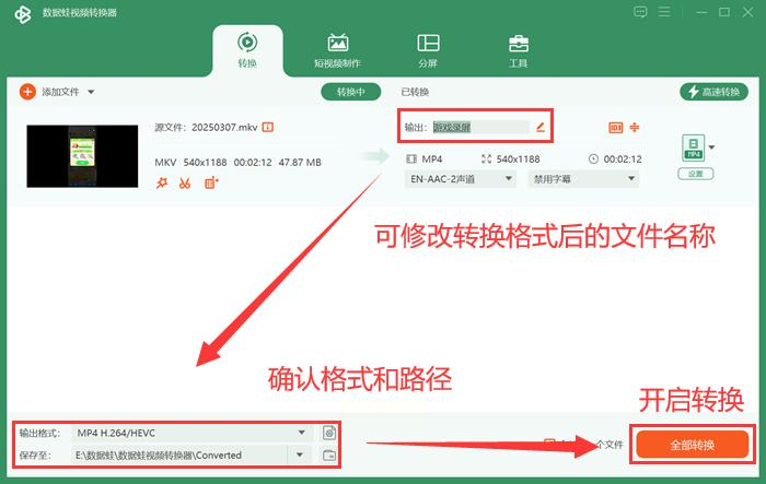 最后一步最简单,点那个大大的“开始转换”按钮,然后喝杯茶等着就行。转换完成后,软件会提示你,你就可以去刚才设置的文件夹里找到转换好的MP4文件了。