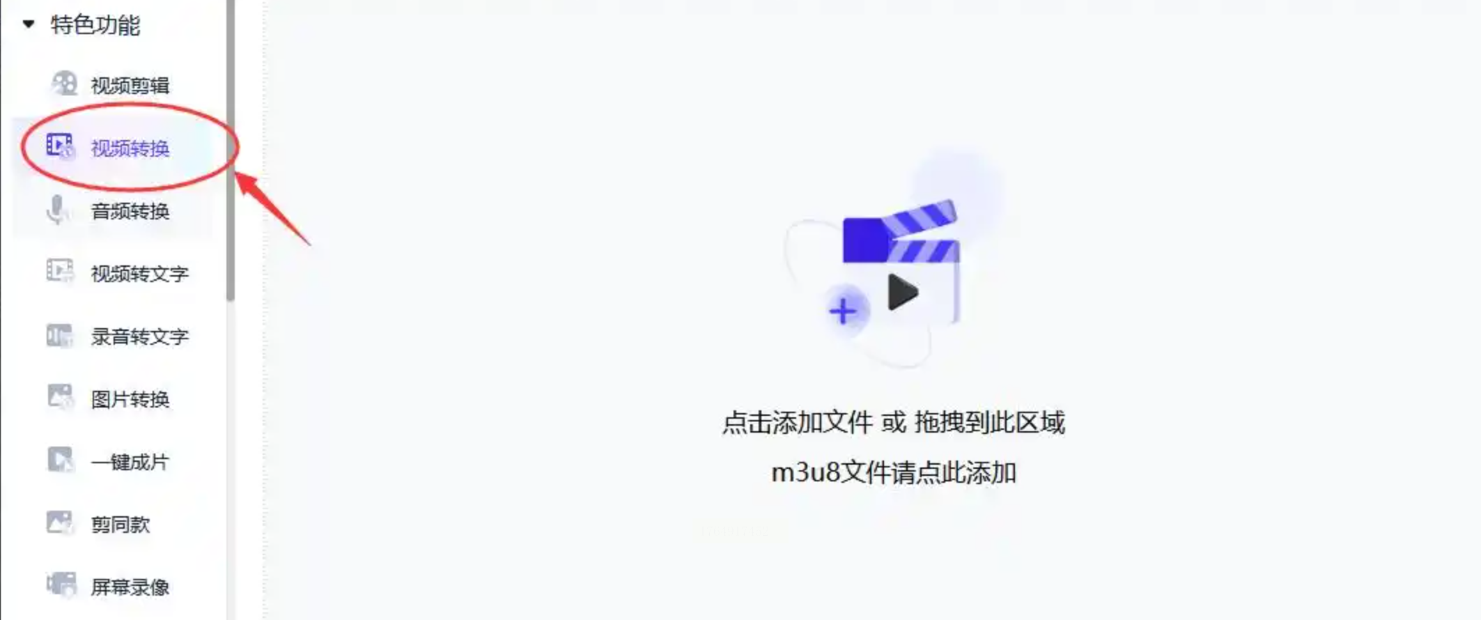 1. 启动软件,在首页或左侧功能栏中找到“视频转换”选项并点击,进入后就可以将你的WEBM视频添加进来。