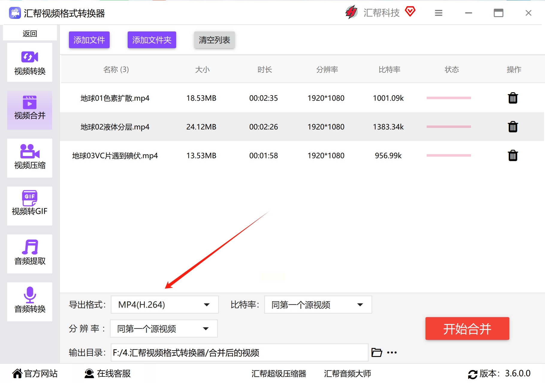 “汇帮视频格式转换器”是一款功能丰富的视频处理工具,除了格式转换外,还提供了视频合并功能。它的界面简洁,操作直观,适合需要快速合并视频且不希望过程过于复杂的用户。以下是具体步骤: