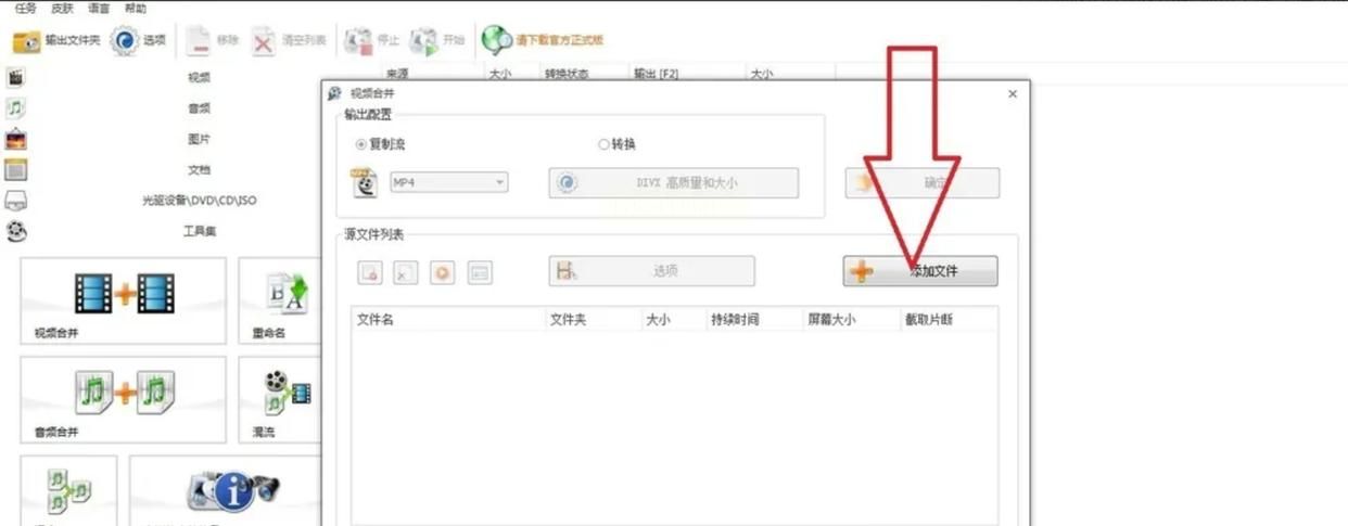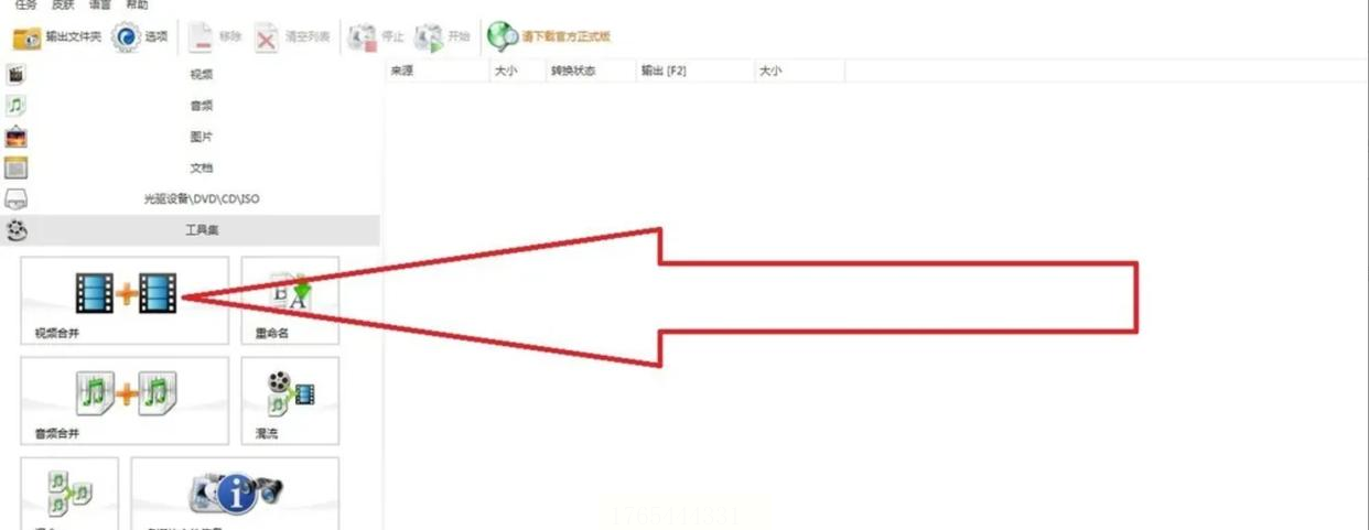 在工具集中选择“视频合并”按钮,进入专用界面。
