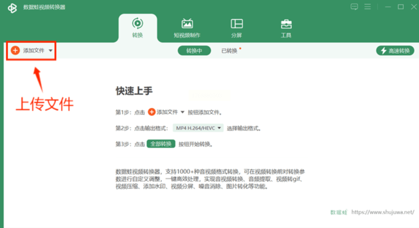 步骤二:上传WMV文件,支持常见格式输入。