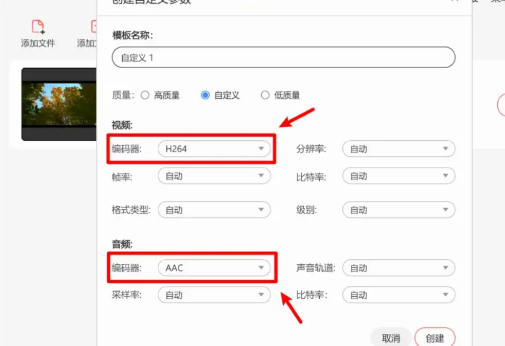 步骤三:音频部分用AAC编码,比特率调高以保真。