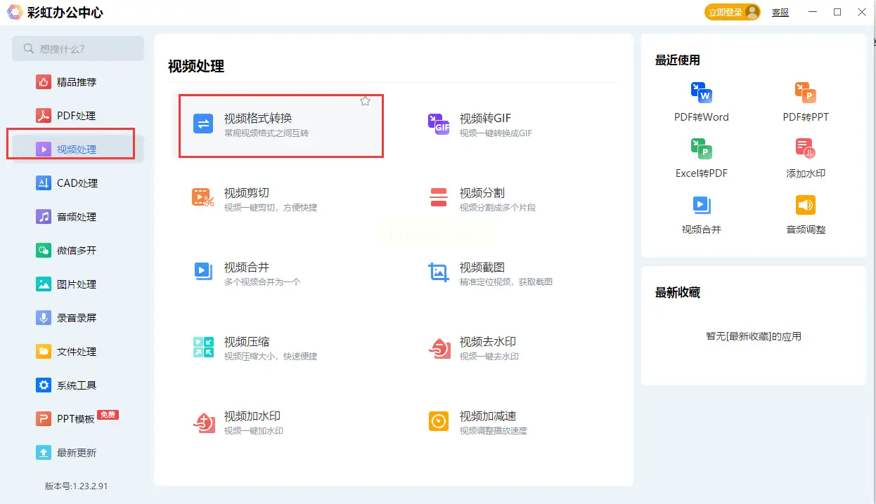步骤一:在软件左侧找到视频处理,点击格式转换功能。