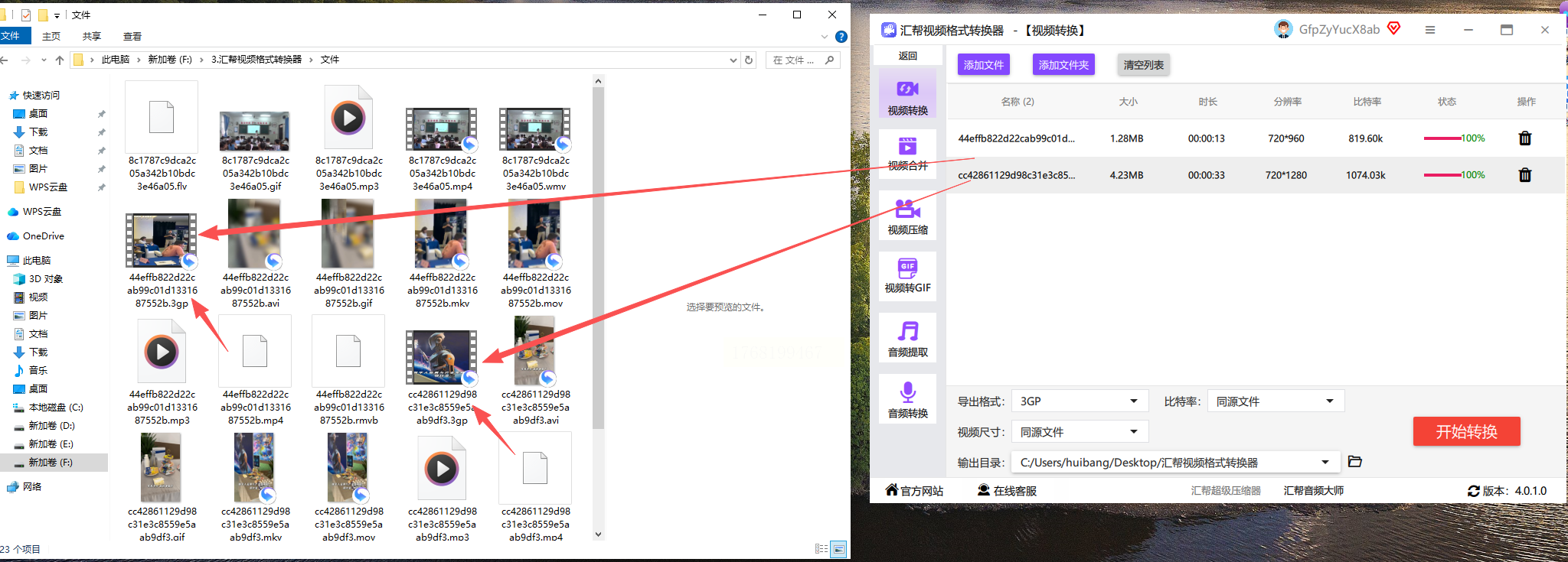 步骤六:转换完成后,你会看到原文件和新生成的3GP文件同时存在。你可以直接在输出目录里找到转换好的视频,复制到旧设备里使用就可以了。