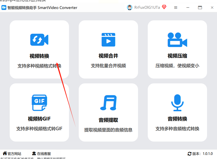 打开"智能视频转换助手",主界面会有几个大按钮,比如"视频转换""音频转换""格式批量转换"。咱们选"视频转换",点进去~