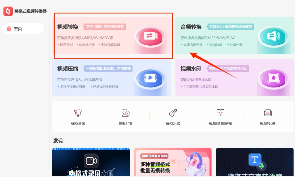 1. 启动软件后,在主界面找到"视频转换"功能模块,这里能看到清晰的格式分类标签(MP4、MOV、FLV等),点击即可进入转换界面。