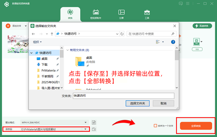 4. 输出路径设置支持快速选择(如"桌面"或"我的文档"),也可自定义到任意磁盘分区。