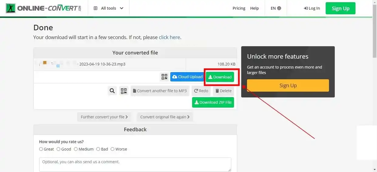 步骤五:点击“开始转换”或“Convert”按钮。服务器会开始处理你的文件,请耐心等待。