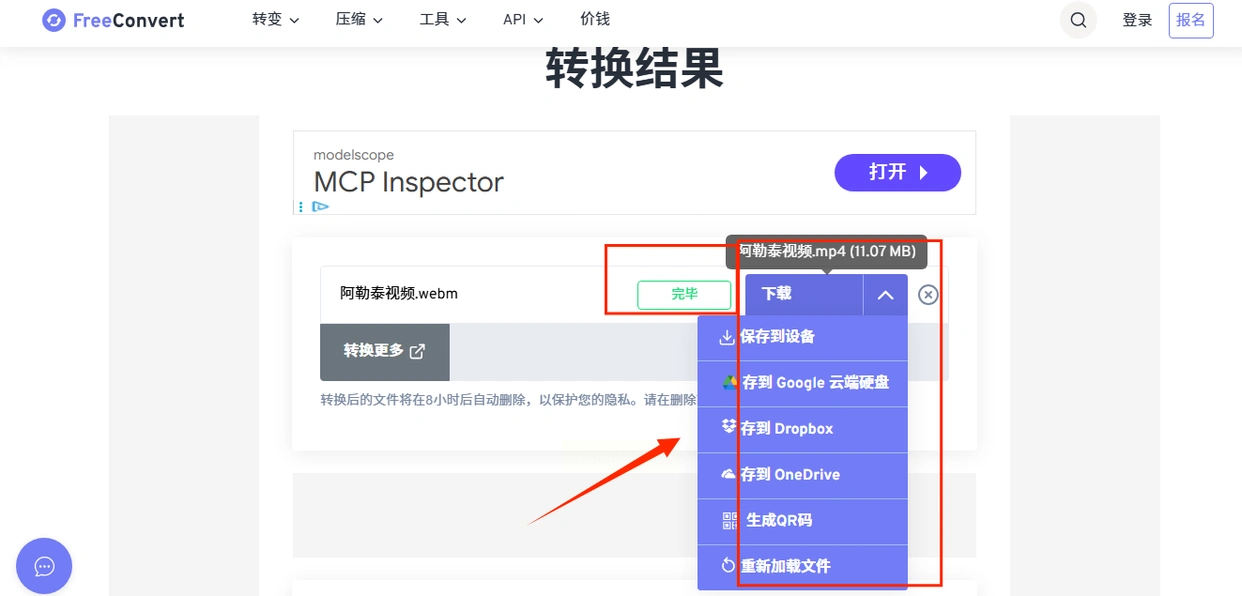 5. 下载文件:转换完成后,点击“Download”直接保存至本地,或选择“Save to Cloud”上传至云端存储。