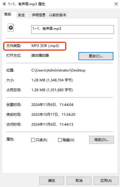 步骤三:转换完成后,右键点击文件,选择“属性”查看文件类型是否已变为MP3。此时,您可以直接播放或传输该音频文件。需要注意的是,这种方法一次只能处理一个文件,且如果视频编码不标准,可能导致音频无法正常播放。