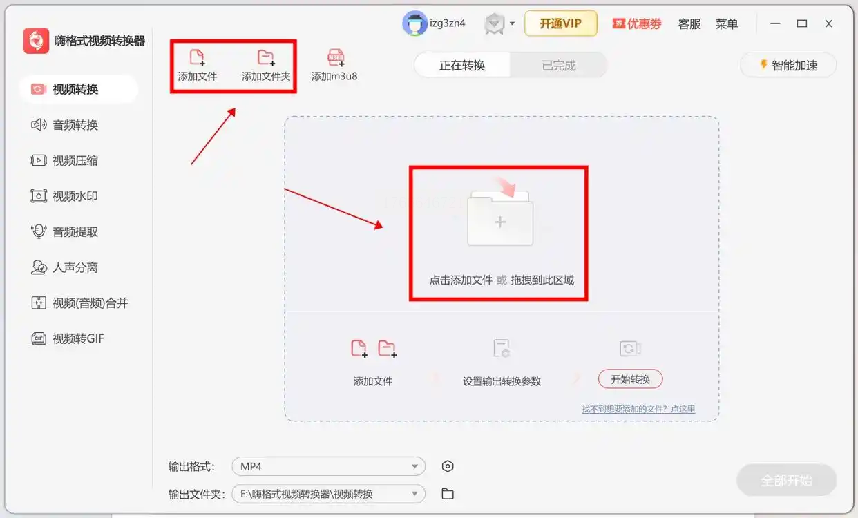 打开软件后,点击「视频转换」模块,界面自动显示“添加文件”按钮。支持拖拽文件至指定区域,或按格式筛选快速导入同类型视频。