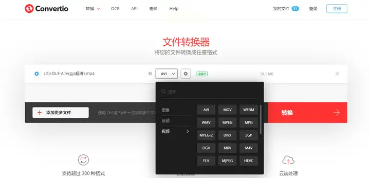 Convertio提供简单易用的在线文件转换服务,支持多种视频格式互转。