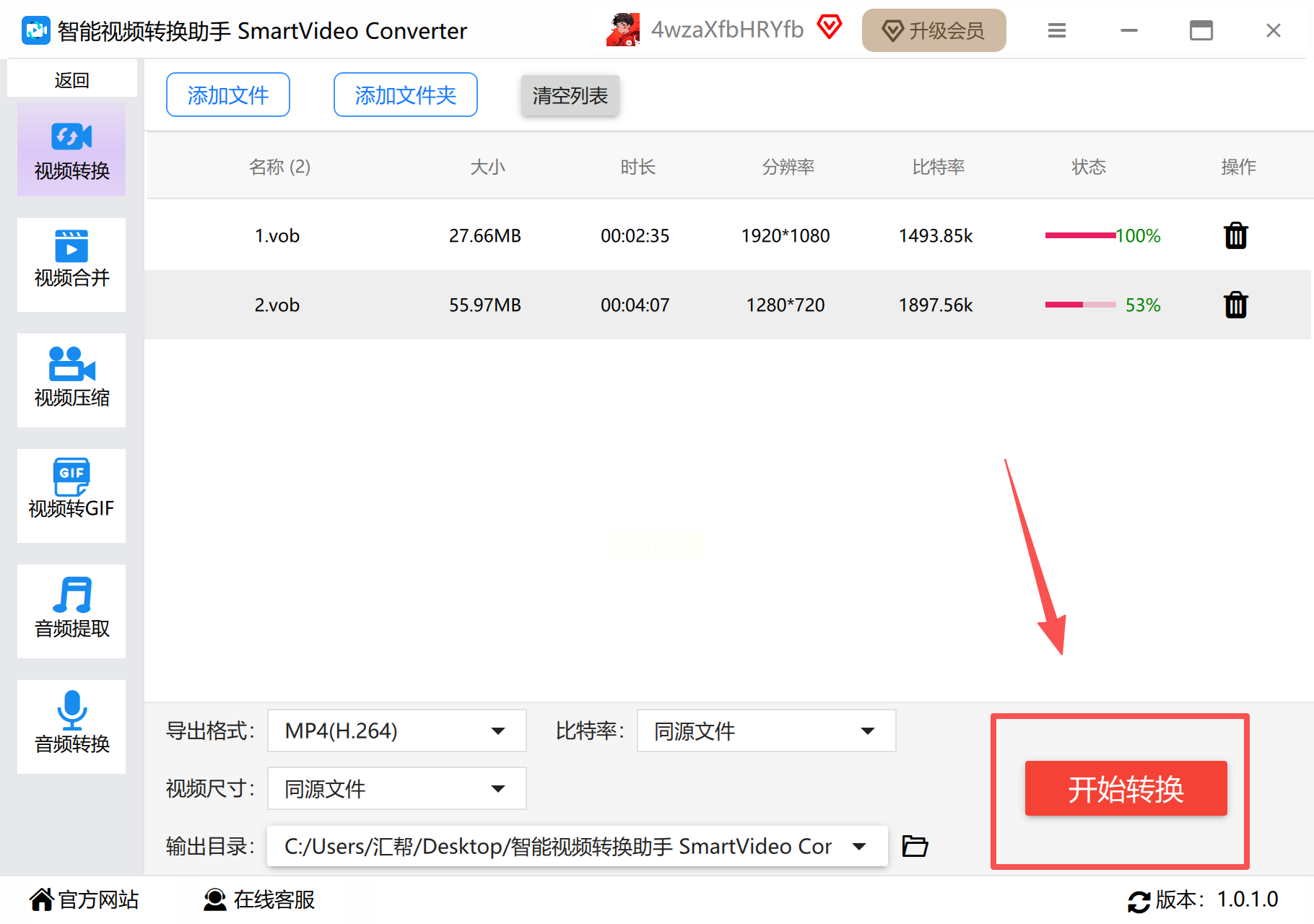 步骤六: 点击“开始转换”,静静观察进度条的移动,整个过程一目了然。