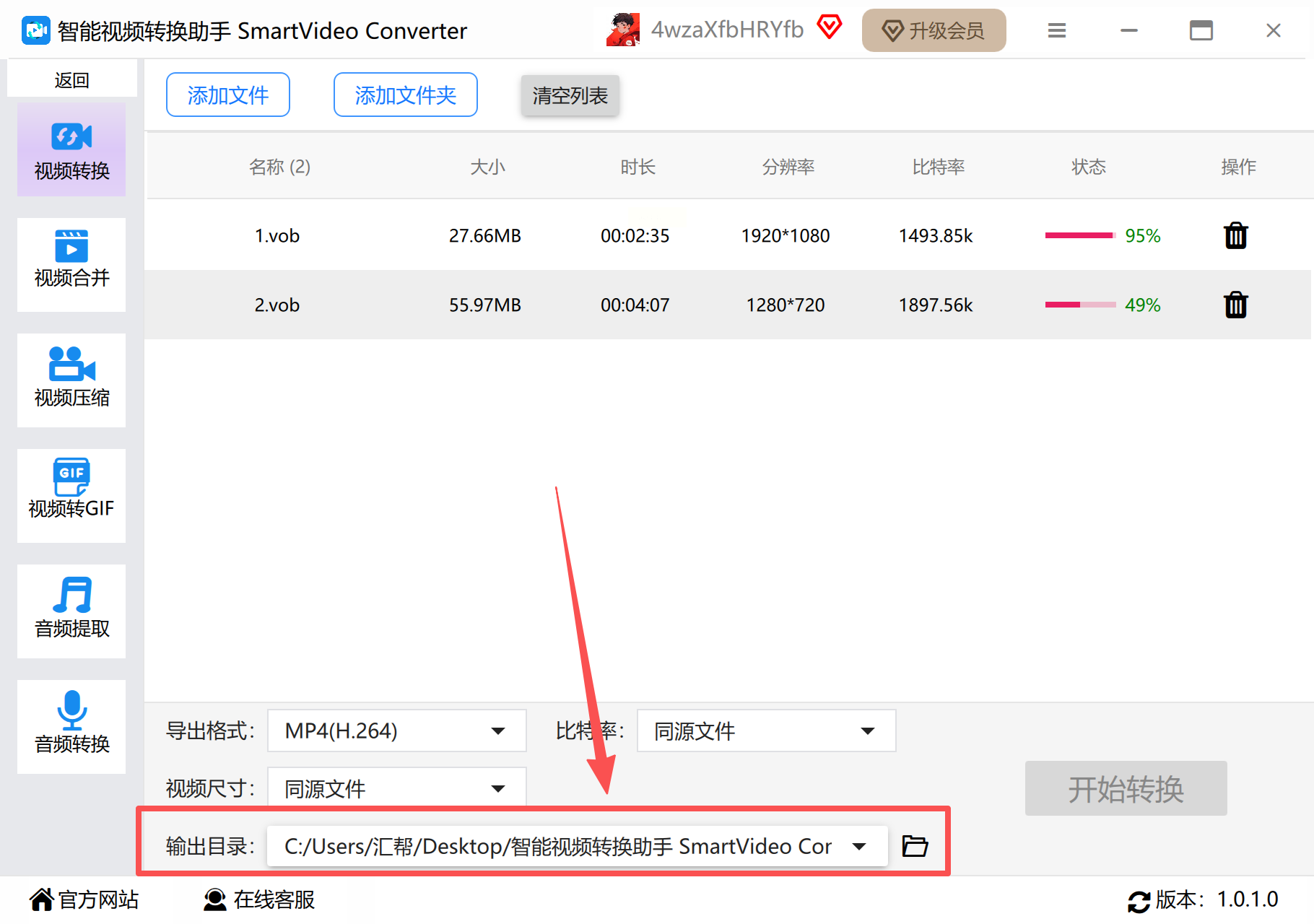 步骤四: 设置好文件的输出保存位置,最后点击“开始转换”或“立即转换”按钮,等待任务完成即可。