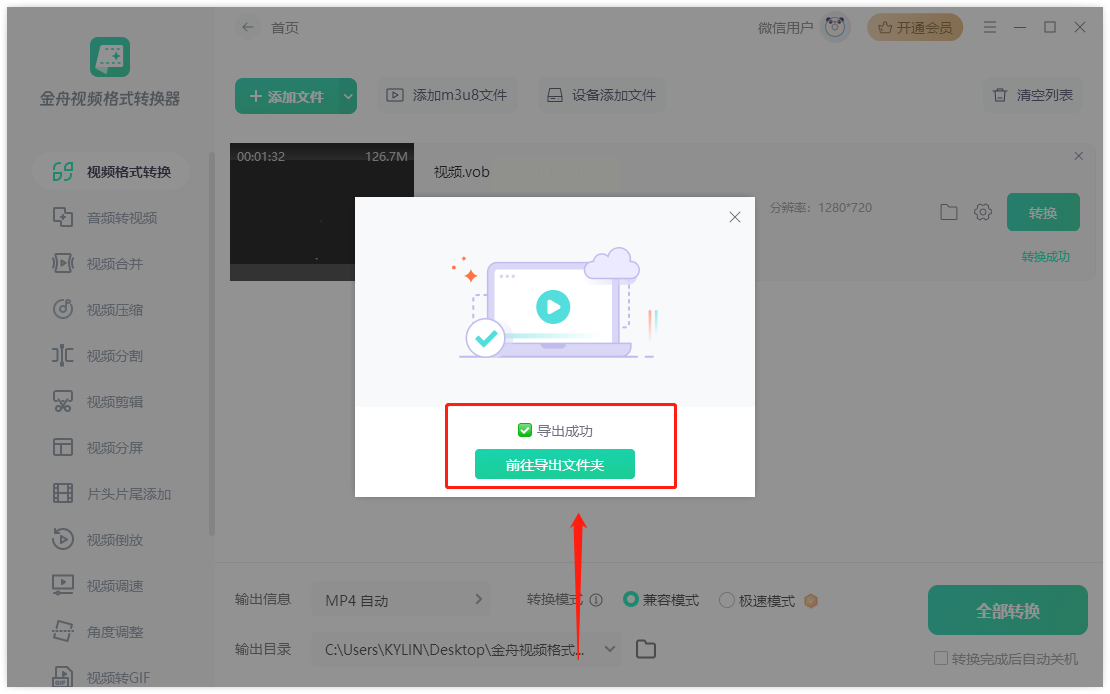 步骤四: 确认格式无误后,直接点击界面下方的“全部转换”按钮。转换完成后,软件通常会有一个“打开输出文件夹”的提示,点击就能快速查看转换好的所有MP4文件。