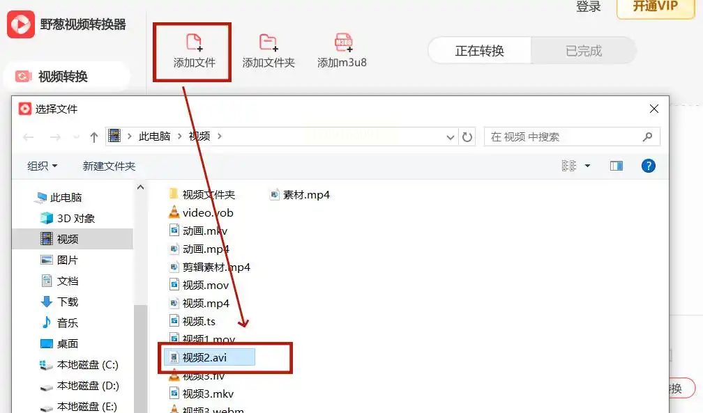 步骤二:导入AVI文件,支持批量添加与拖拽上传。