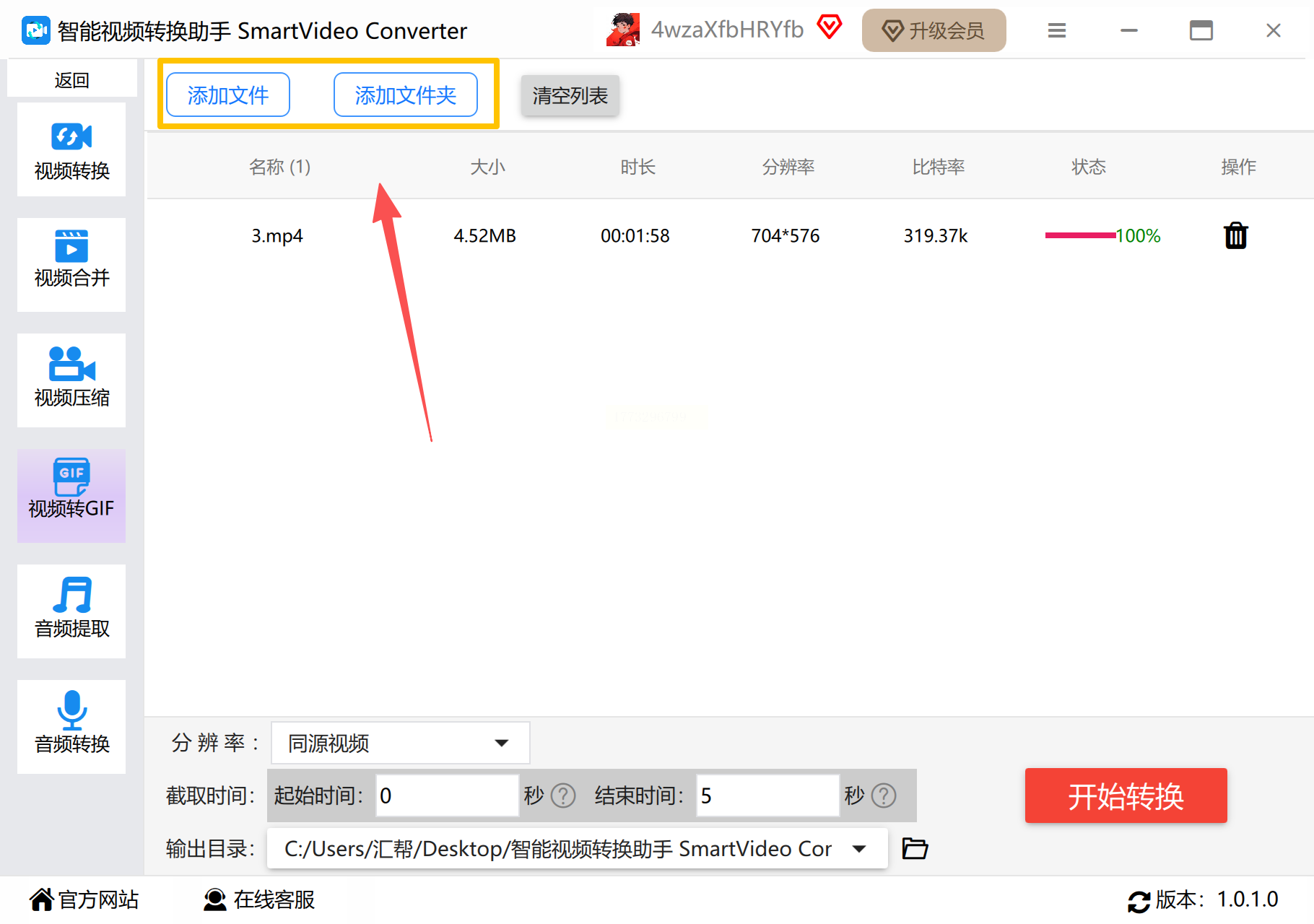 2. 添加视频文件:点击"添加文件"按钮,或者直接把视频拖到软件窗口里,支持同时导入多个视频(比如5个搞笑片段一起转,节省时间)。