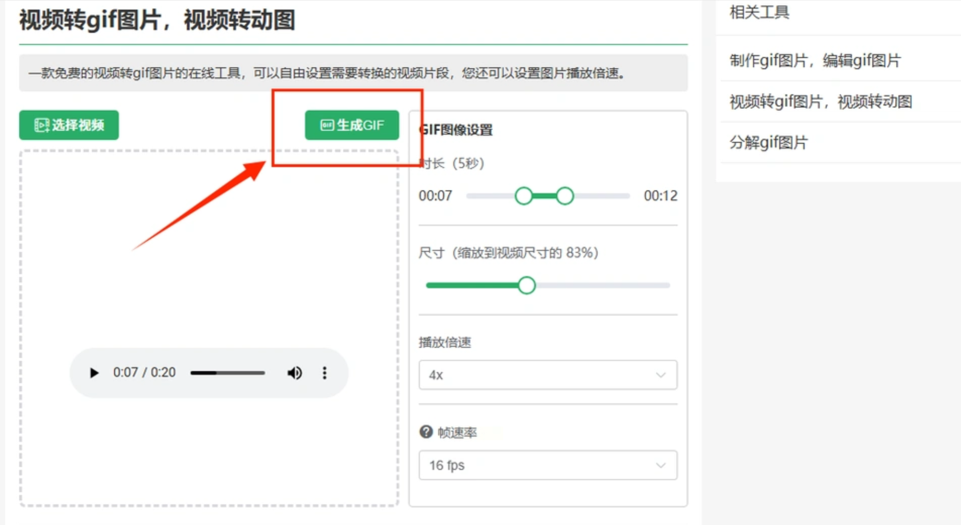 如果只是偶尔转换1-2个视频片段,不想安装软件占用电脑内存,网页端工具就是最佳选择,打开浏览器就能用,手机上也能操作,临时解决“怎么把视频转成gif”的需求特别便捷。