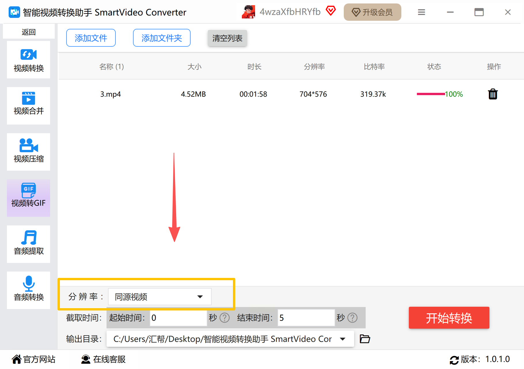 - 分辨率:别盲目选最高值!1080P足够清晰,选太高反而可能让转换后的GIF文件损坏(亲测4K视频转GIF容易卡壳)。