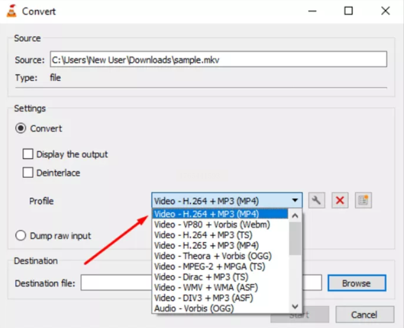 第三步:在“目标文件”那里点浏览,选个保存位置,然后点【开始】。VLC就会一边播放你的视频,一边在后台把它转换成MP4。