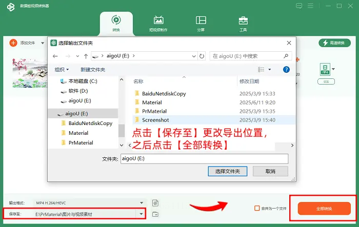第三步:在开始转换前,记得点【保存至】旁边的小文件夹图标,选一个你容易找到的位置。我一般习惯放桌面或者专门的“已转换视频”文件夹。