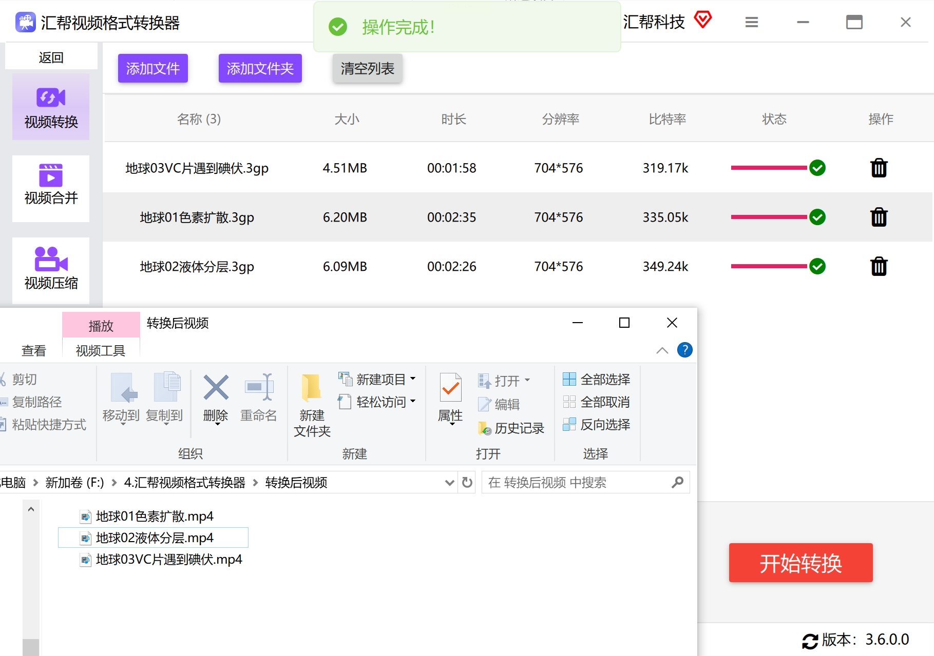 转换完成后,软件会弹窗告诉你完成了。这时候去你设置的输出文件夹看看,崭新的MP4文件已经躺在那里了!原来的3GP文件还好好地待在原处,完全不用担心被覆盖。